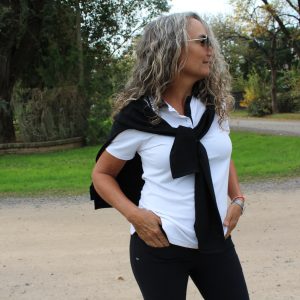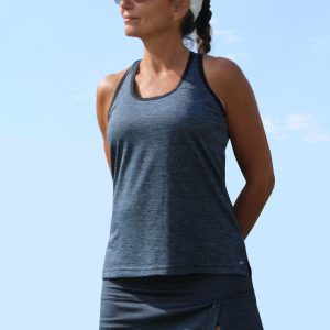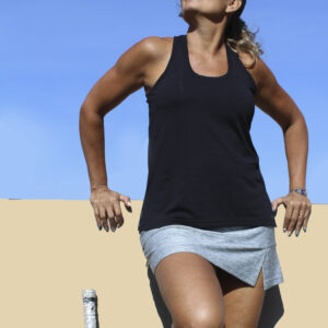 Musculosa confeccionada sobre tela suave liviana con spandex. combinada con tela tramada de la linea CLARA.